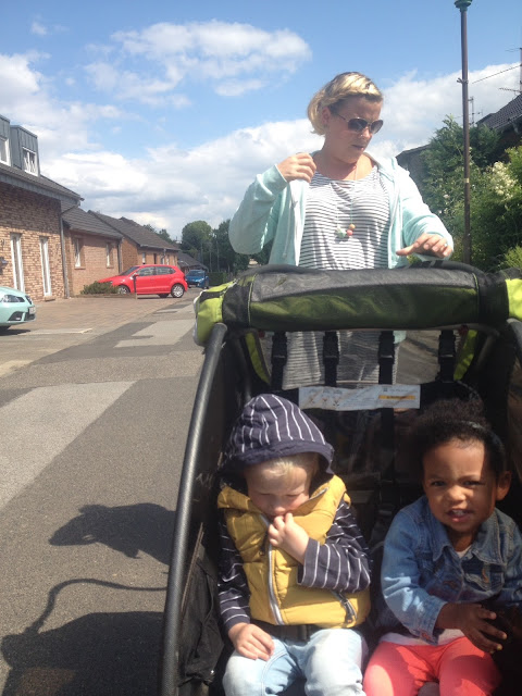 Kids had naps, and then we took a walk around the village to the local playground. It's a lovely little village where they live, so quiet and clean. After the walk we took the kids home and had some delicious supper. Kids went down and the three of us drank wine and talked until way too late, planning our trip to the Dutch countryside and Amsterdam next week. Eden was up again in the night but we both slept better than we had the night before.